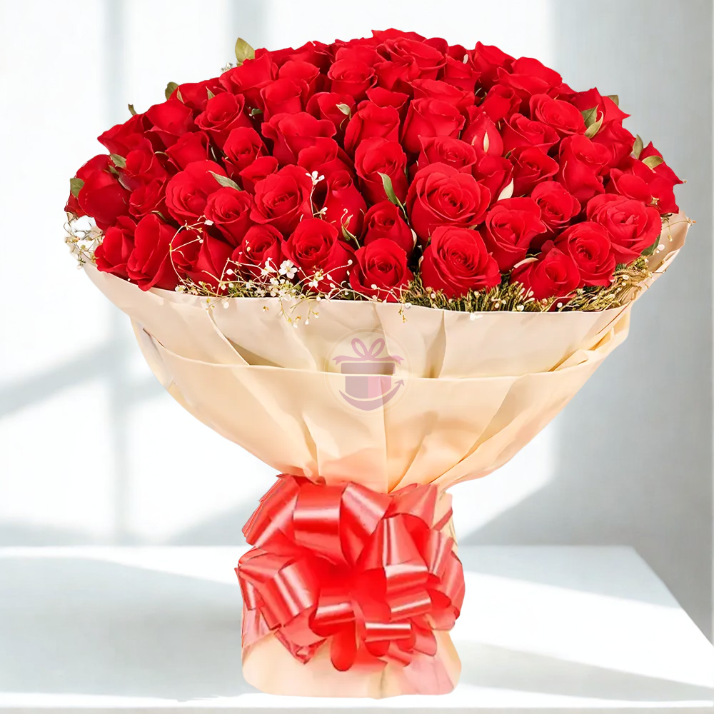 The 100 Red Roses Bouquet is ideal for grand celebrations—anniversaries, milestones, proposals, or moments when only “a hundred roses” will do. It says “I love you beyond measure.”