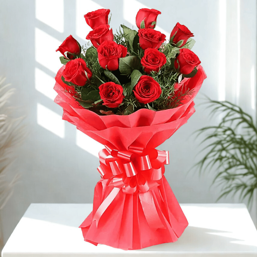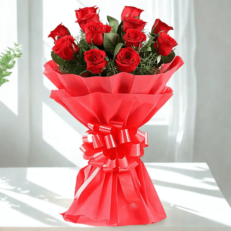 Charming 12 Red Carnations Bouquet
