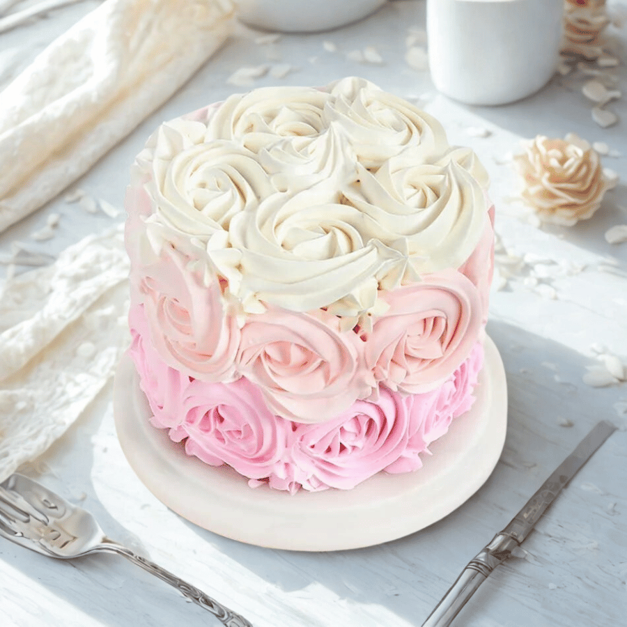 Fresh Red Rose Vanilla Cake
