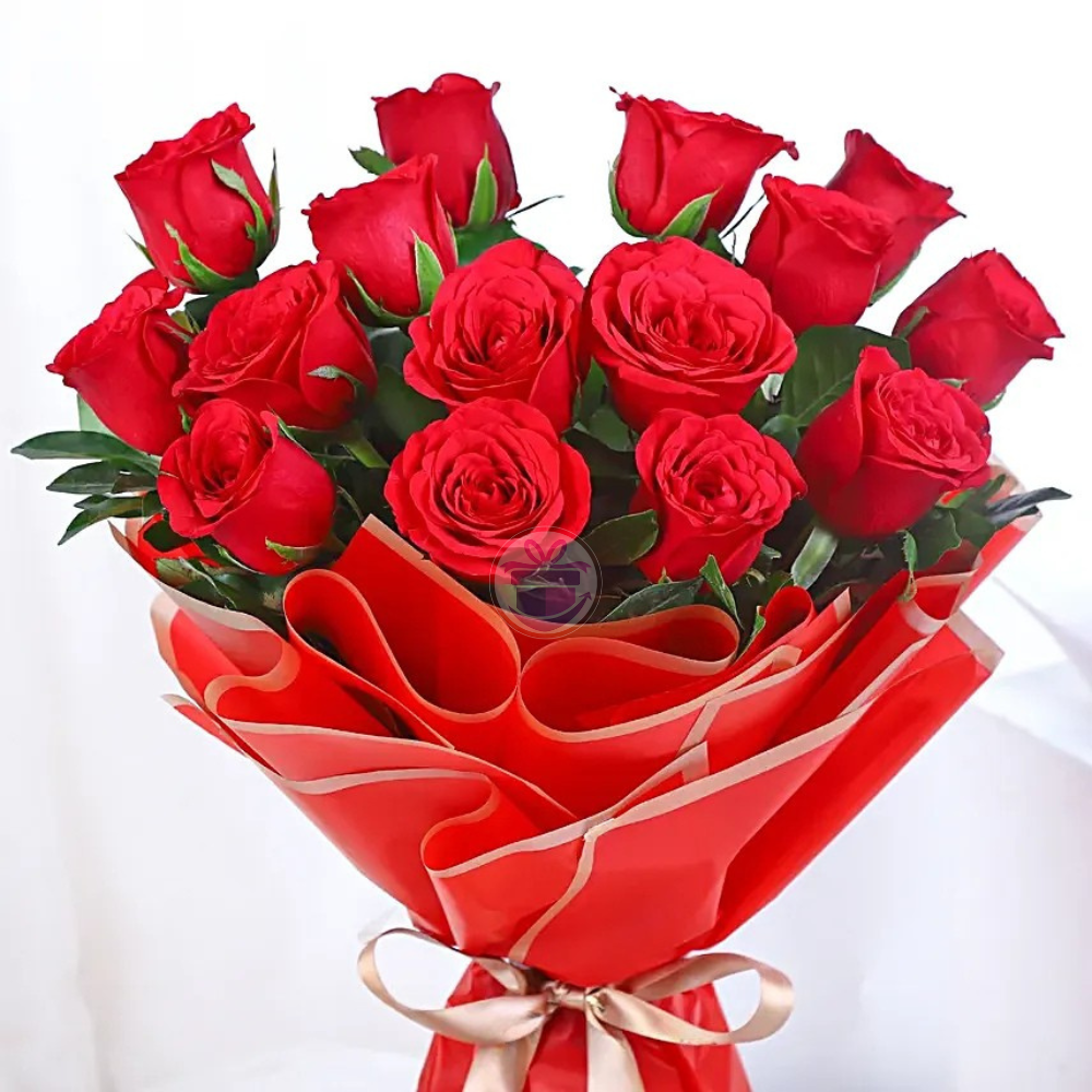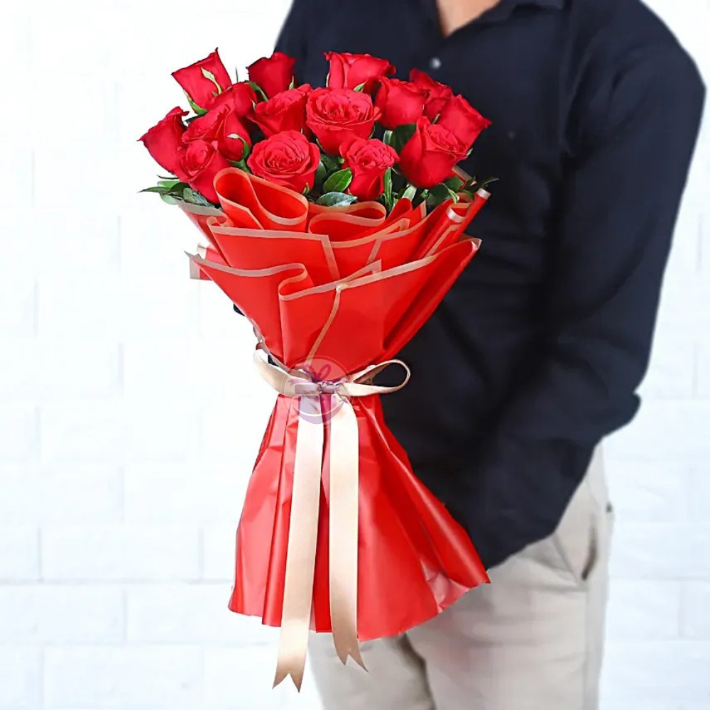 Crimson Grace Rose Arrangement – 20 Red Roses in Glass Vase with White Fillers